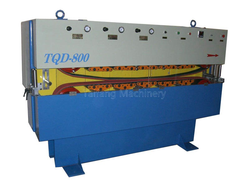 3. 履带牵引的压带机构采用上下相对应的气缸压紧滚轮装置,经手动控制调压阀调节涨紧、压紧、松开所需气压,能适应线缆工艺的要求。